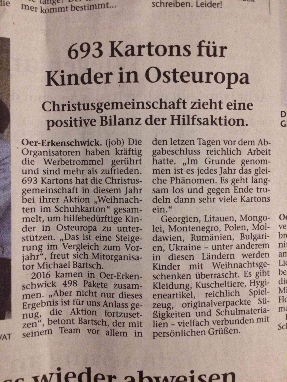 Bild Stimbergzeitung Abschluss (Weihnachten im Schuhkarton 2017)